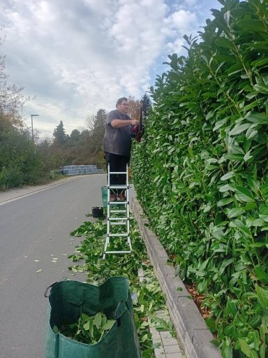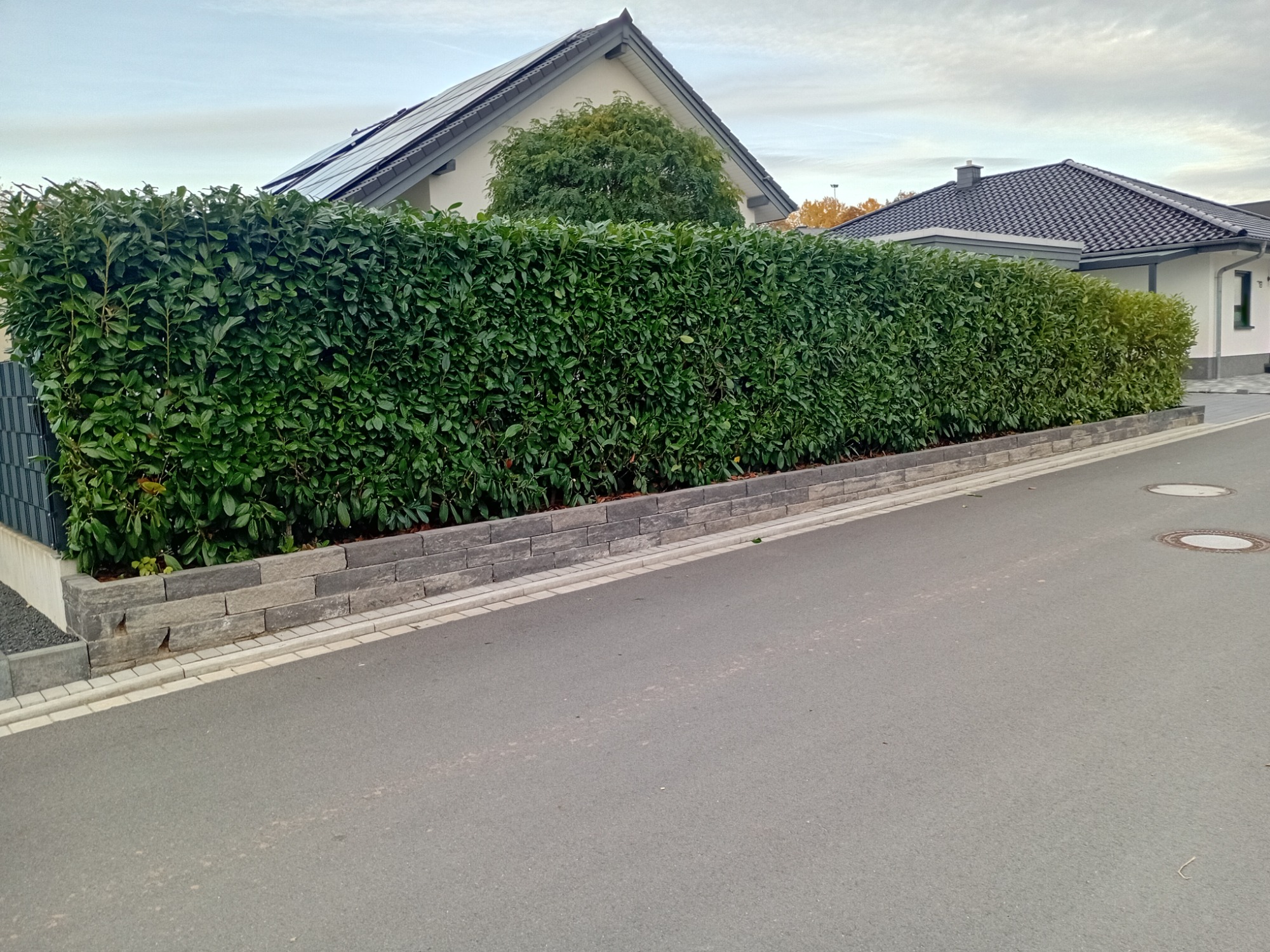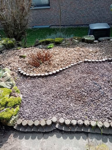 Gestaltetes Gartenbeet mit Lavamulch und Häckselgut – langlebig, pflegeleicht und optisch ansprechend